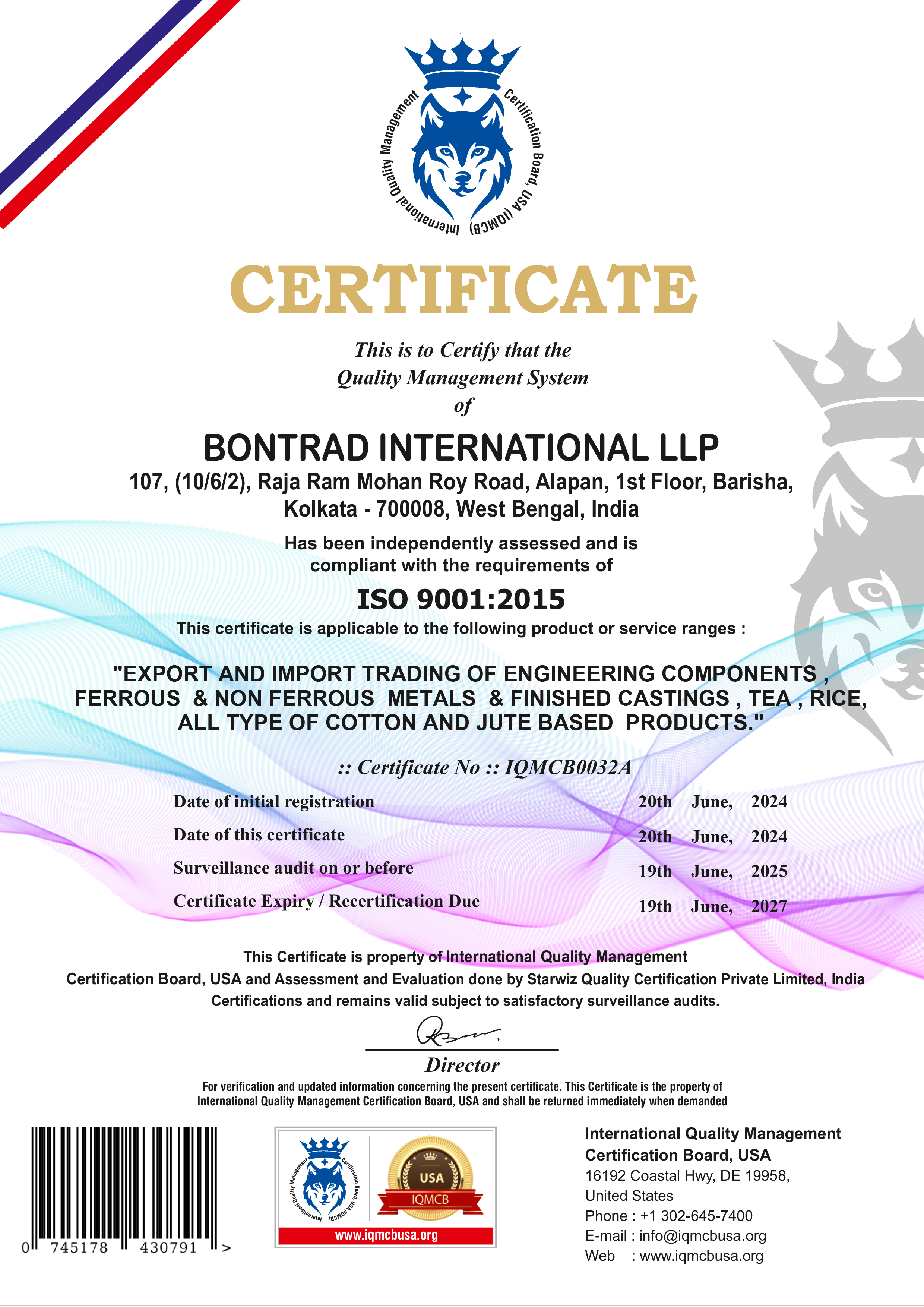 Bontrad International LLP is an ISO 9001:2015 certified company.
